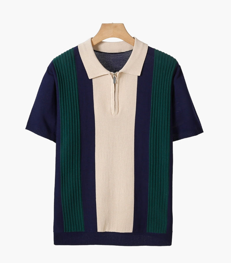 Tivoli Half-Zip brings a refined vintage energy to everyday style. With wide ribbed panels, clean vertical color blocking, and a sharp half-zip collar, this short-sleeve knit is designed for the man who appreciates timeless silhouettes with a modern edge.